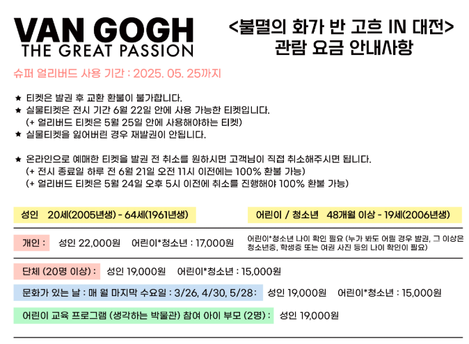 이 특별전은 반 고흐의 초기 작품부터 파리 시기의 작품들까지 그의 예술적 발전 과정을 한눈에 볼 수 있는 기회입니다. 관람을 원하시는 분들은 사전 예매를 통해 티켓을 구매하시기 바랍니다.