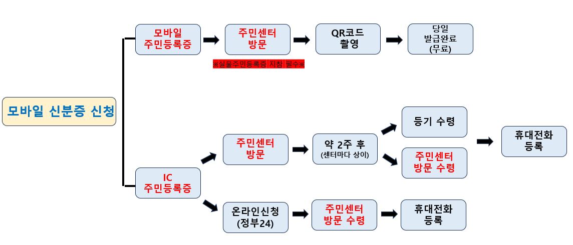 - 주민센터 가서 신청 후 2주후에 등기로 받던지 다시 주민센터가서 수령한 후 모바일에 등록가능